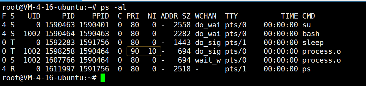 事与愿违啊,此时进程的优先级是90,也就是说其实这个进程的PRI(old)为80,因此其实这个PRI(old)是一个固定值.