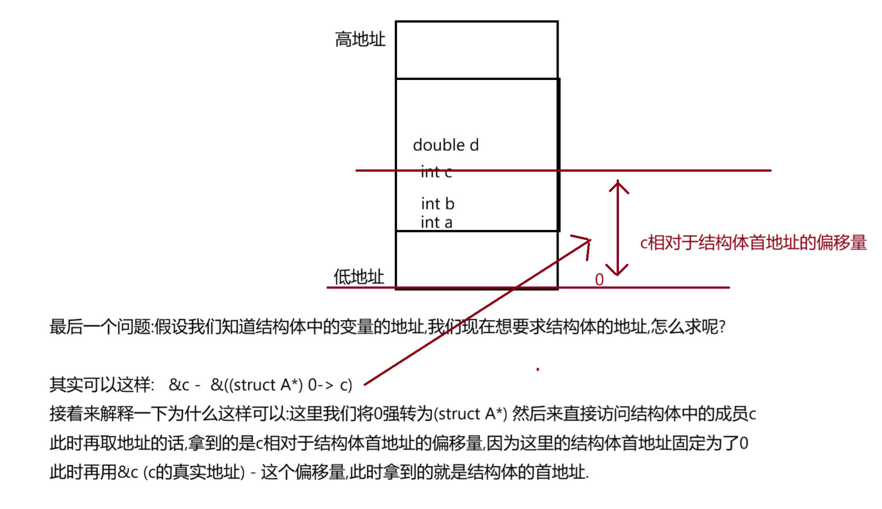 很简单.这不就是我们前面提到的问题嘛,已知结构体中某个元素的地址,那么不就可以获取这个结构体的地址么,之后也就能获取其他属性了.