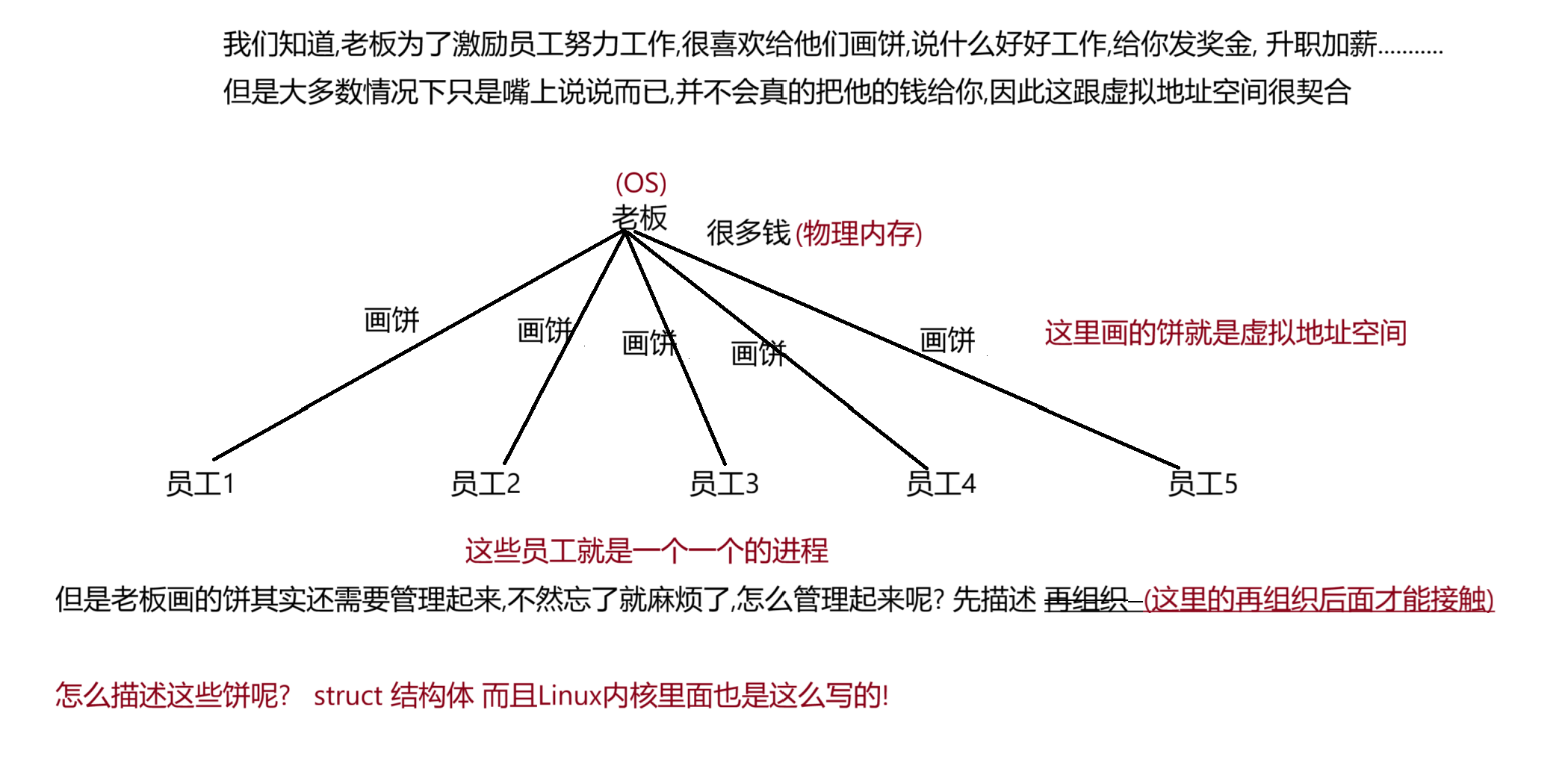 类比到计算机这里, 这里的进程就是我们, 虚拟地址空间和页表 就是帮你保管压岁钱的妈妈,你要买的东西就是物理内存, 只有当你的请求合理的时候,妈妈才会给你钱,也就是说只有进程的请求合理的时候,虚拟地址空间才会进程分配物理内存.
