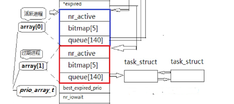 其实,这里设计了两个队列:活动队列和过期队列,活动队列为array[0],过期队列为array[1].