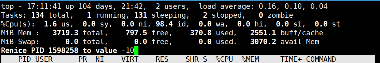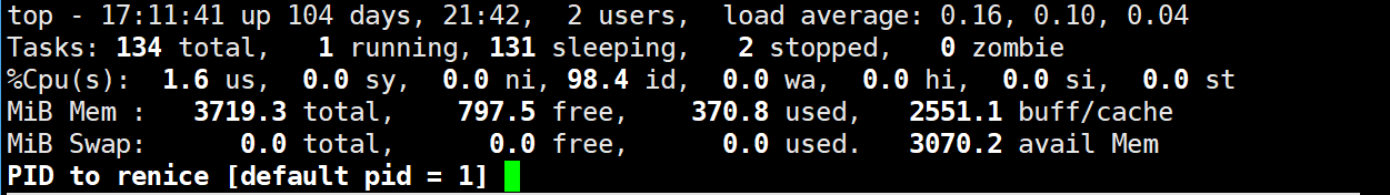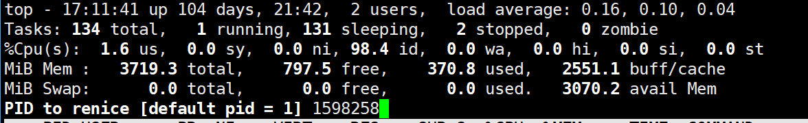 这里我们先介绍一种方法: top ->进入top后按 r‒> 输⼊进程的 PID ‒> 输入nice值