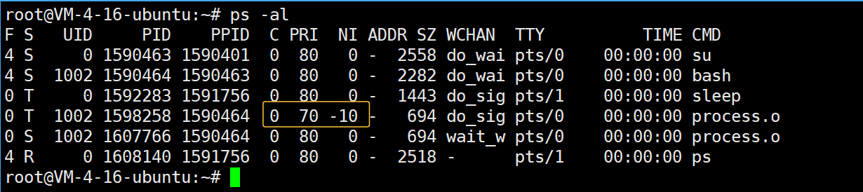 上面我们将进程的优先级改成了70,那么我们此时想将其优先级增加10,那么此时你可能会认为 70 + 10 = 80,那我们来看看是这样吗?