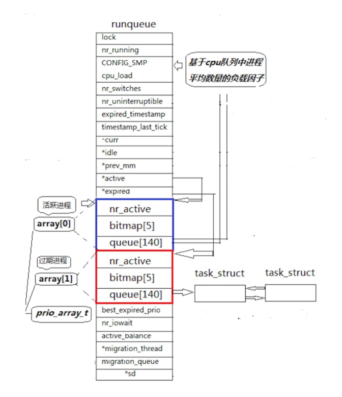 上图是Linux2.6内核中进程队列的数据结构,之间关系也已经给大家画出来,方便大家理解.