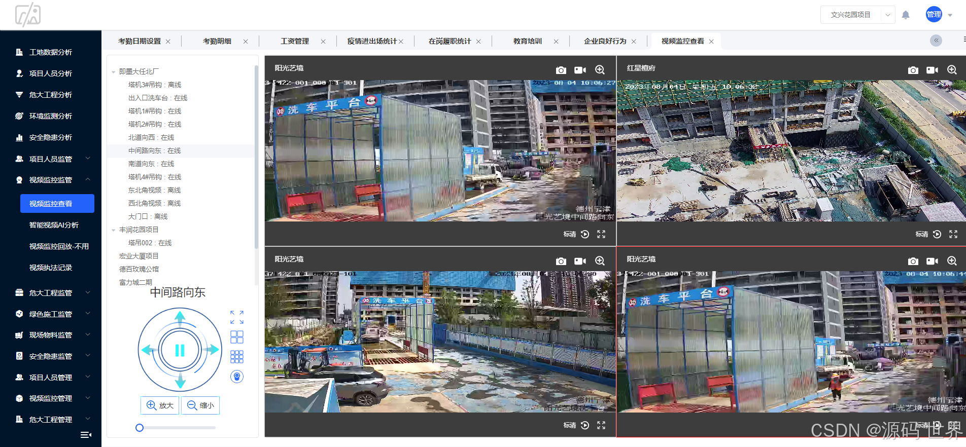 综合监控:项目部实时掌握现场各类生产管理的监控状态。