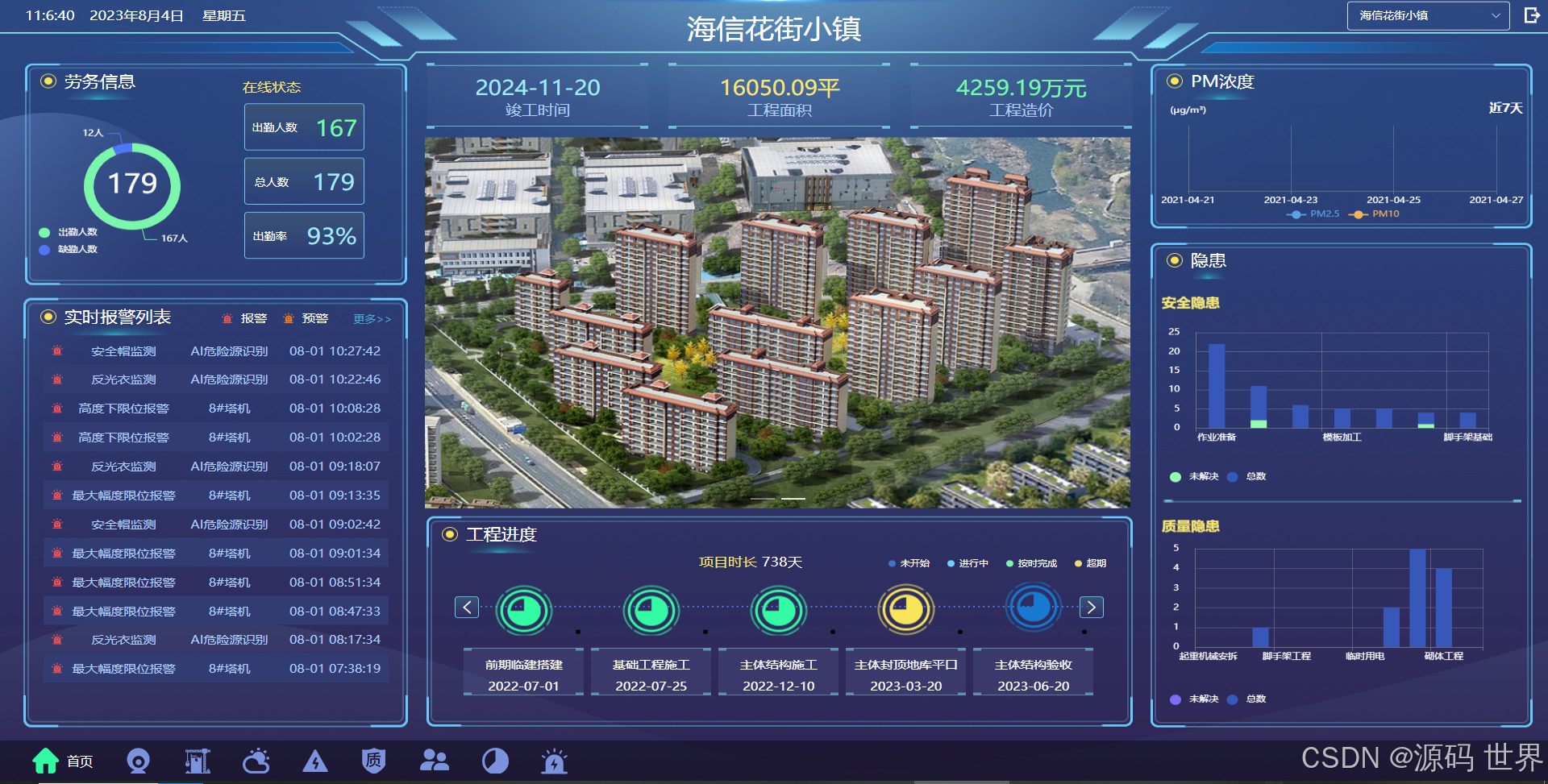一套基于微服务架构+Java+Spring Cloud +UniApp +MySql技术开发的智慧工地云平台源码,saas服务模式。支持多端展示:PC端、大屏端、手机端、平板端。包含项目人员管理、视频监控管理、危大工程监管、绿色施工管理、现场物料管理、安全隐患排查等功能。