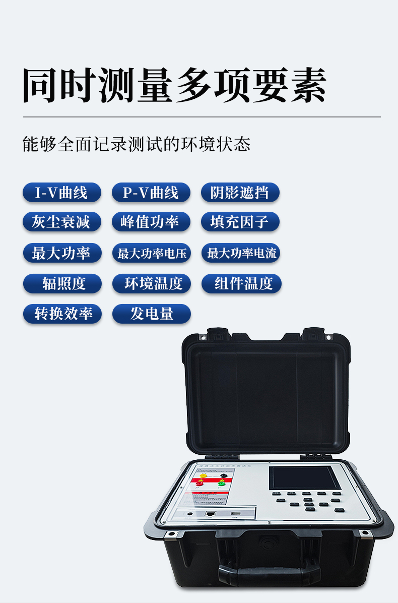 答:精准度绝对经得起专业考验!它整机配备了更高精度的电容 / 电阻式负载,能减少检测误差,让 IV 曲线测量更精准;同时还有快速的辐照计操作模块和专用 IV 曲线分析软件,不仅能高清解析 IV 曲线,还能精准定位光伏板性能问题的根源。而且它支持持续 IV 不间断扫描,哪怕是第三方检测机构做专业认证,或是电站运维做全面排查,都能满足精准、全面的检测需求,是专业场景的首选配置哦!