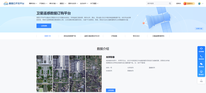登录星图云开放平台-产品能力-精选推荐-卫星遥感订购平台,可咨询获取相关数据。