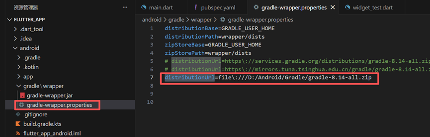在项目-gradle-wrapper-(gradle-wrapper.properties)文件中设置distributionUrl