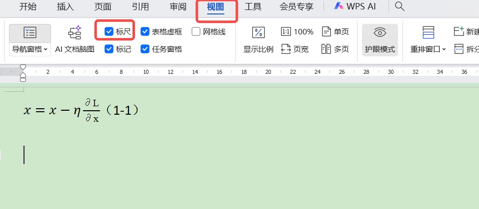 为了设置制表位的位置,首先打开标尺(这里展示的WPS一个版本):