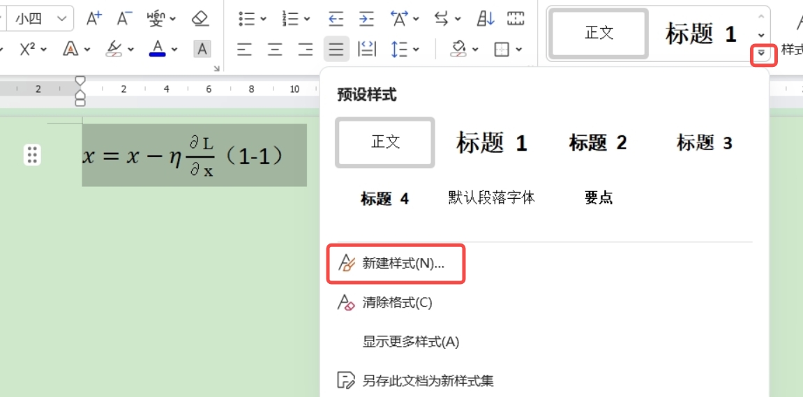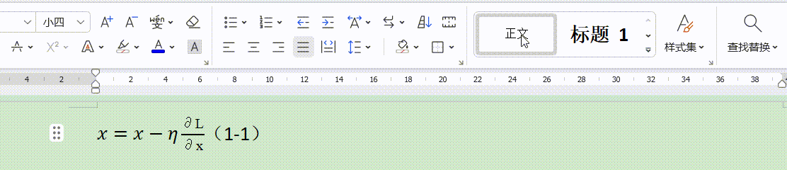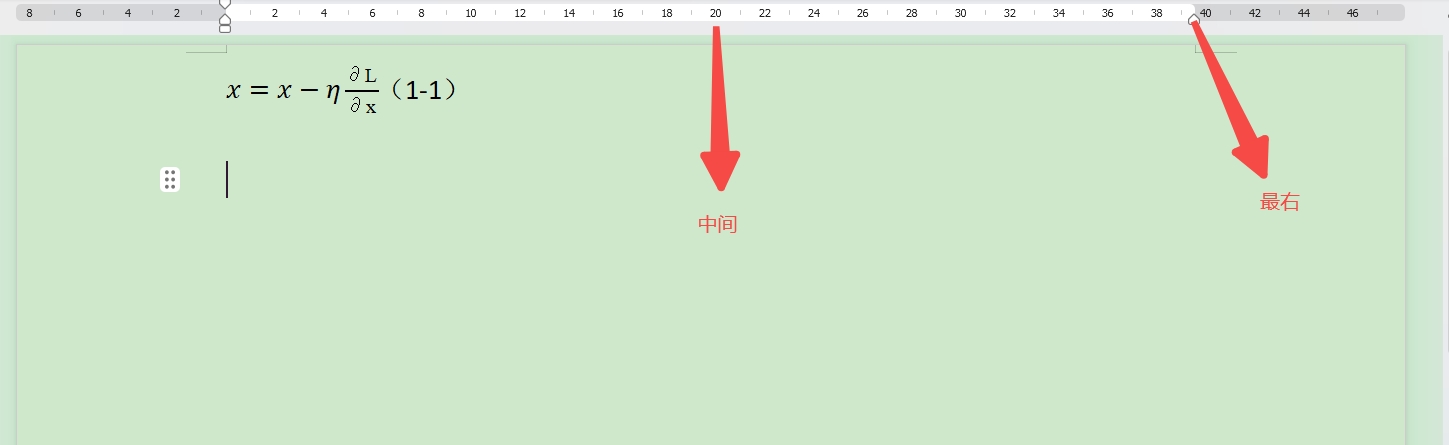 - 因此为了完成公式格式,只需要在行开始使用tab,然后再在编号前使用tab使得编号右对齐。