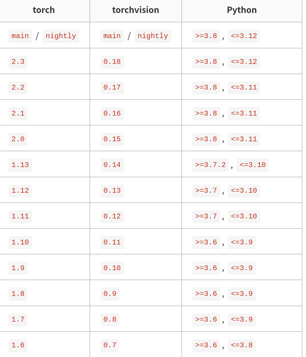 根据pytorch和python的版本对应关系创建python虚拟环境