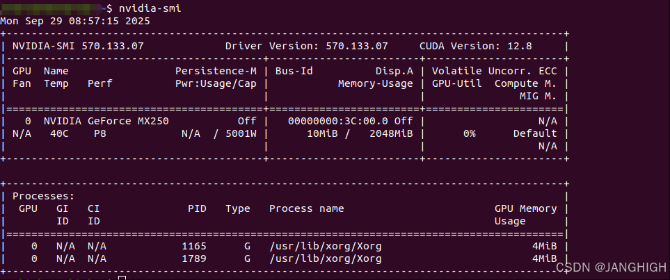 2)安装驱动 :可以直接安装所有推荐驱动 sudo ubuntu-drivers autoinstall,或安装指定版本(如版本570)sudo apt install nvidia-driver-570