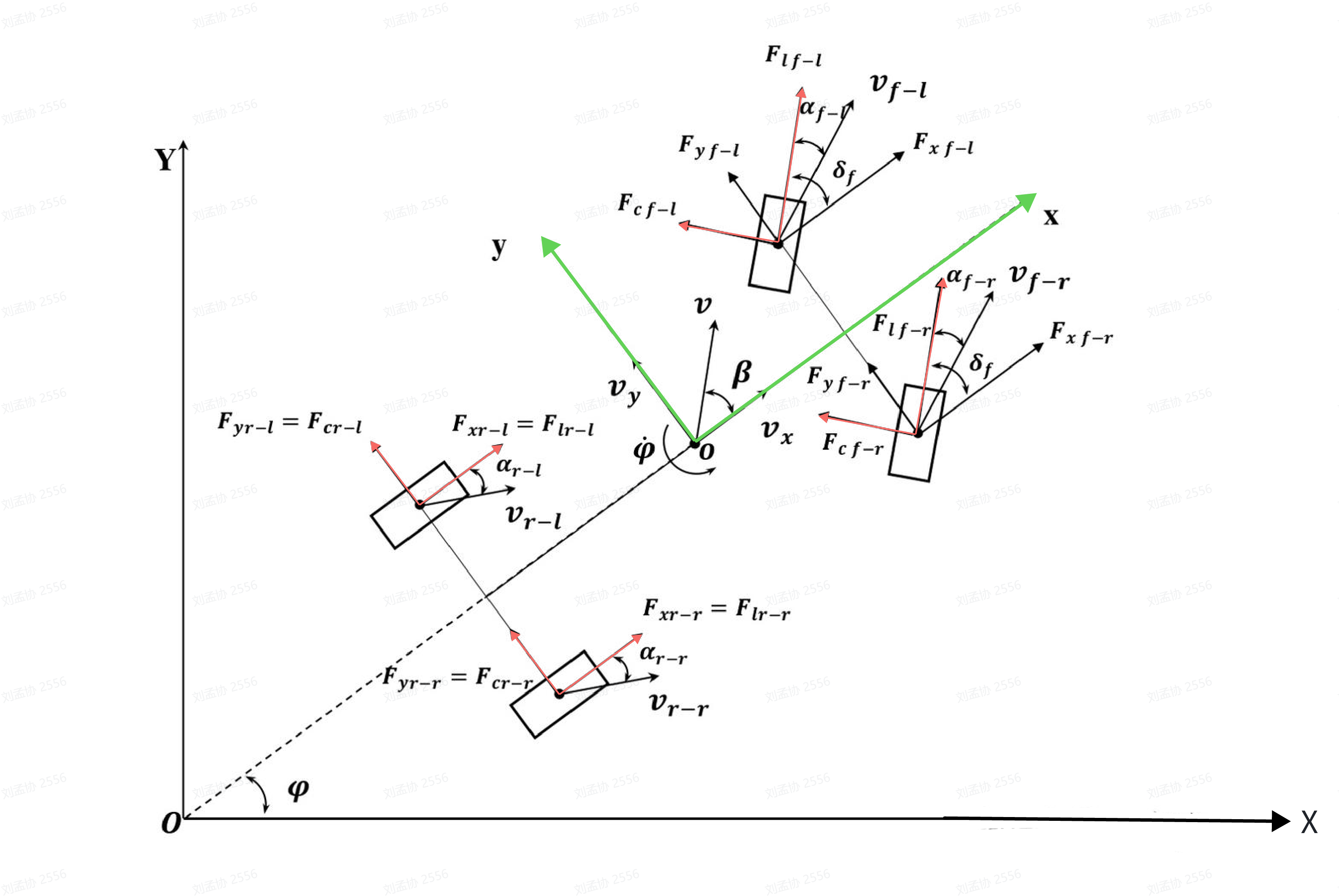 - Fxi、Fyi、FziFxi、Fyi、FziFxi、Fyi、Fzi分别为轮胎纵向力、侧向力、垂向力;