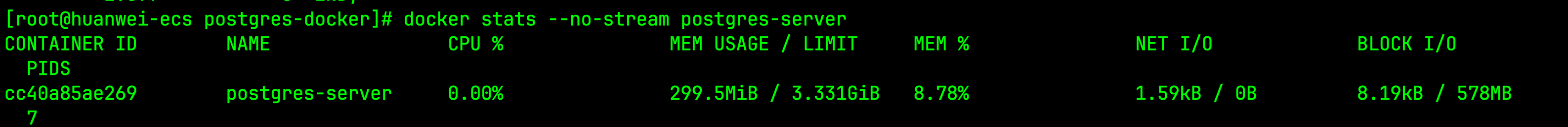 docker stats --no-stream postgres-server