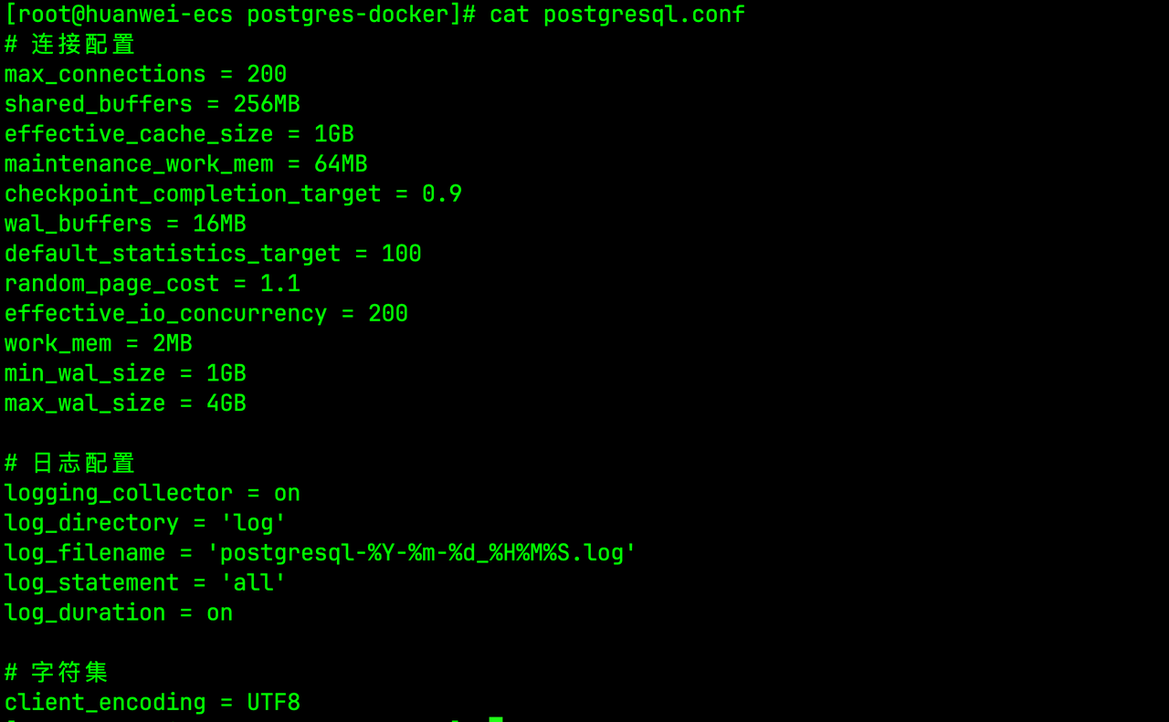 - shared_buffers = 256MB:共享内存缓冲区,建议设为物理内存的25%