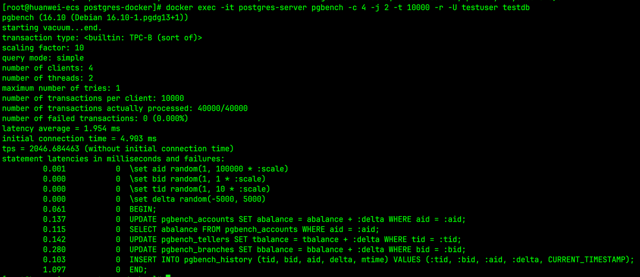 - PostgreSQL TPS 2,046,延迟1.95ms