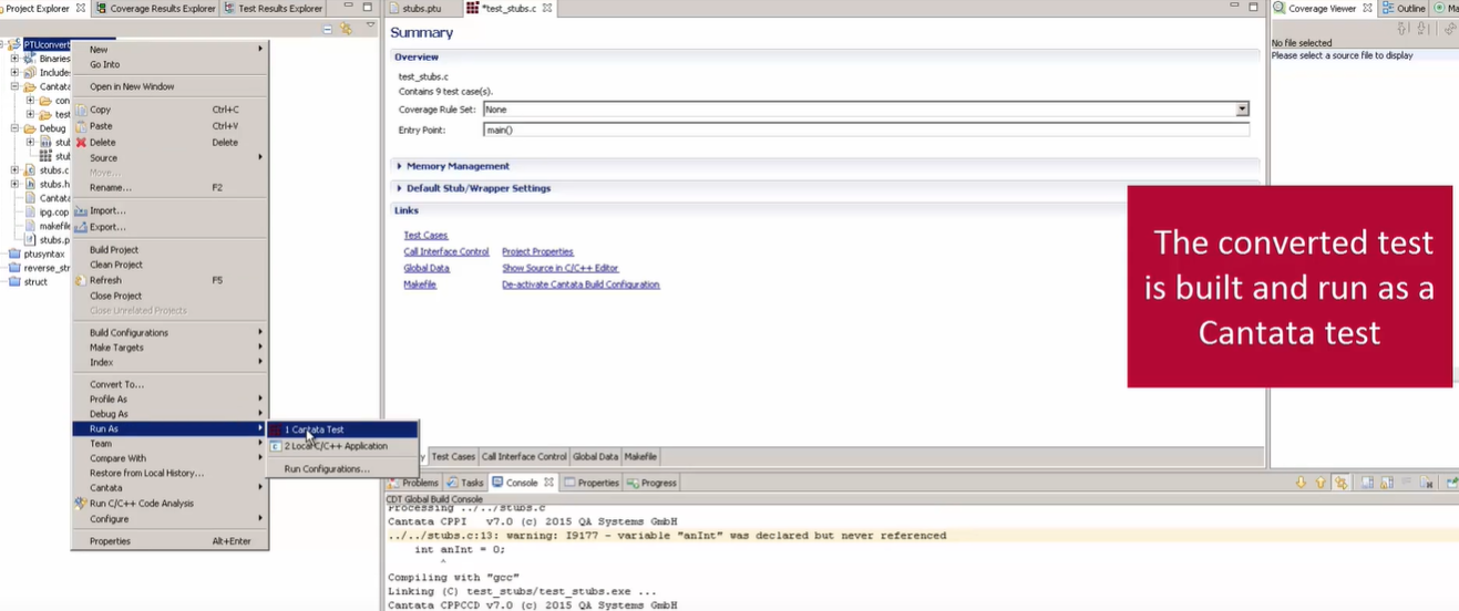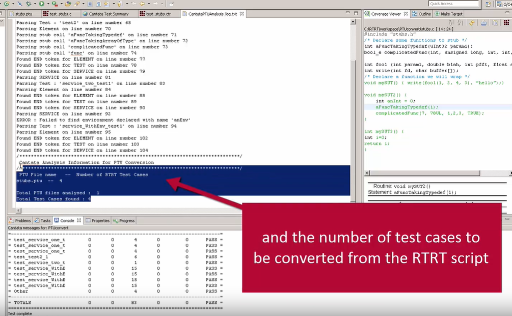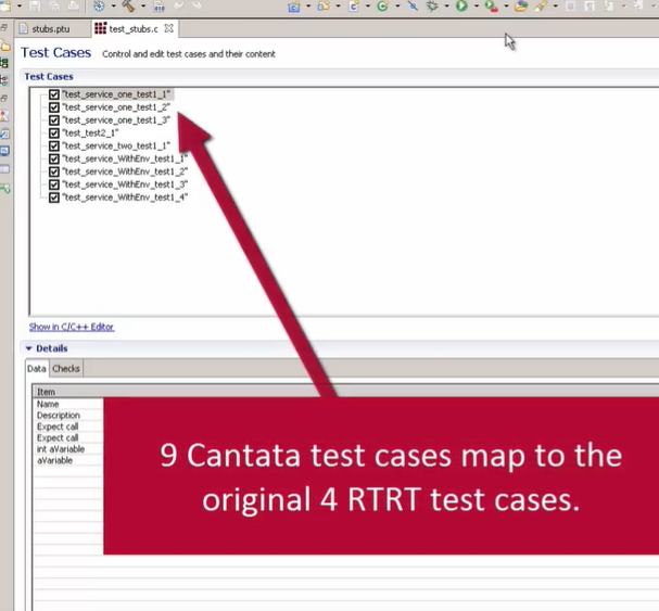 原始的4个RTRT testcases变成9个Cantata Test Cases