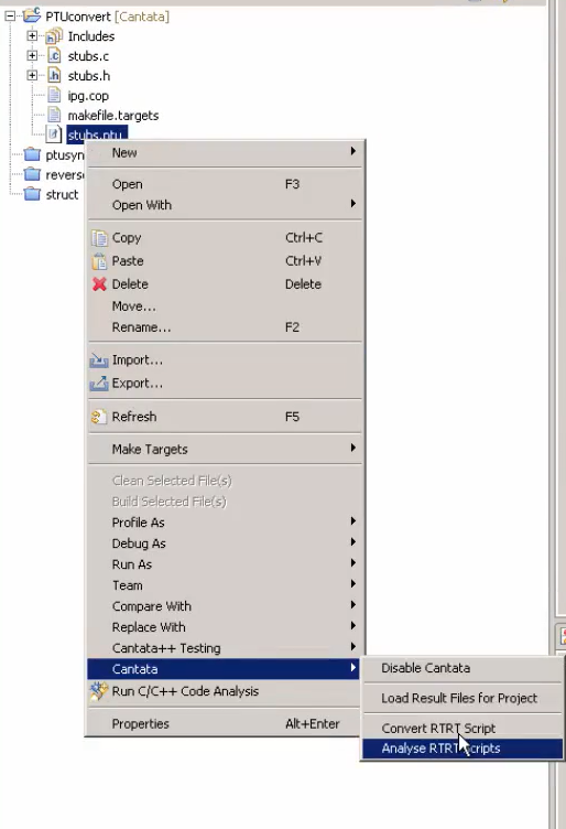 右键stubs.ptu 点击Contata,----- Analyse RTRT Scripts