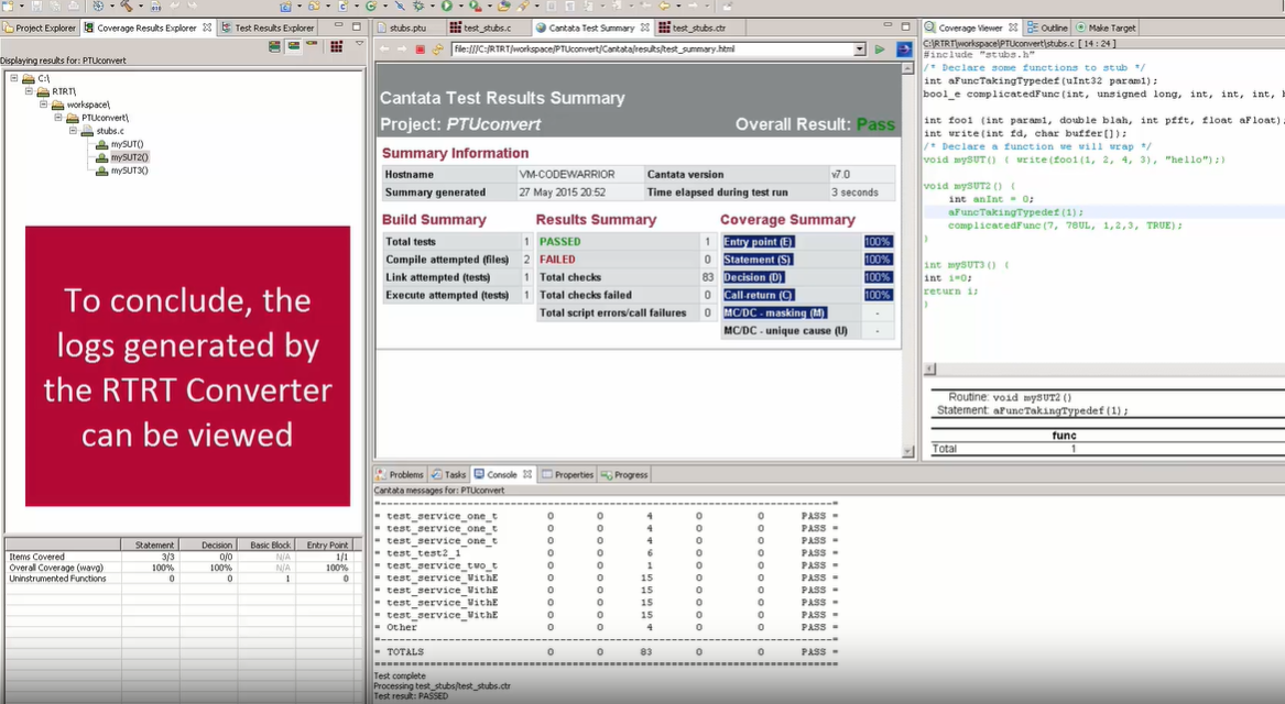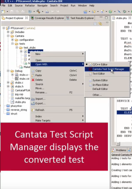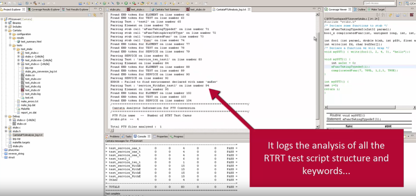 Cantata 能够识别RTRT的test结构和测试脚本。
