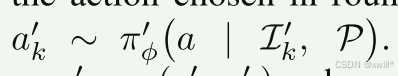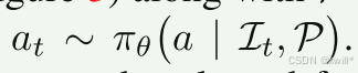 在当前看到了照片 It,并且心里想着目标 P的情况下,大脑 πθ 决定执行动作 at。