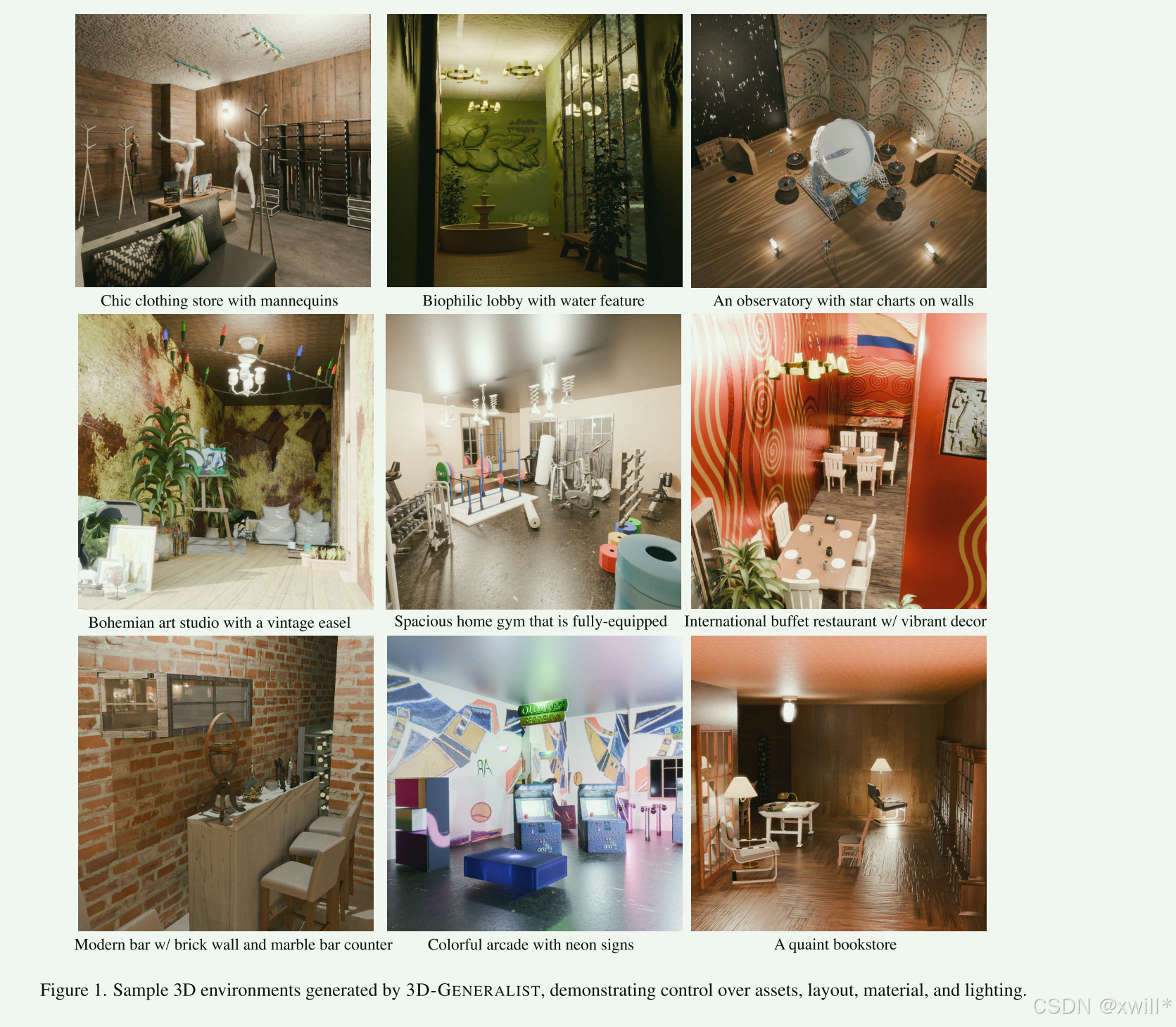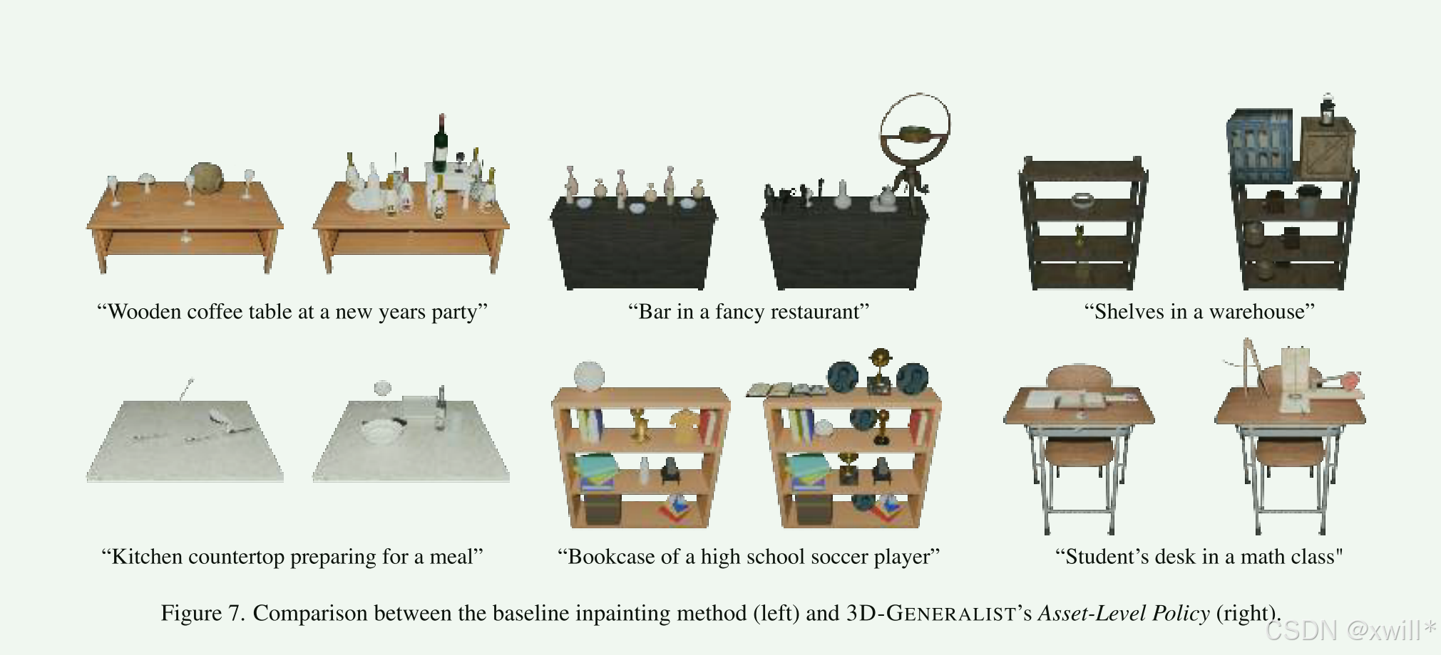 作者有一个巨大的、高质量的3D模型库(桌子、椅子、灯)。