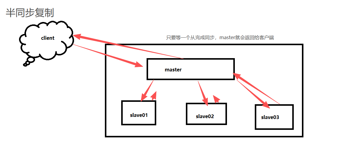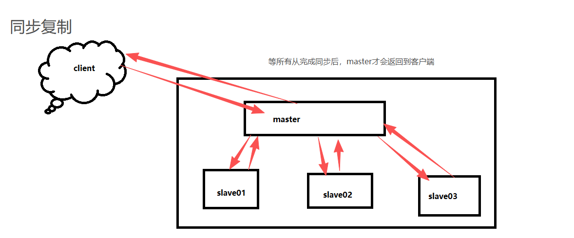 主库将更新写入Binlog日志文件后,需要等待数据更新已经复制到从库中,并且已经在从库执行成功,然后才能返回继续处理其它的请求。同步复制提供了最佳安全性,保证数据安全,数据不会丢失,但对性能有一定的影响。