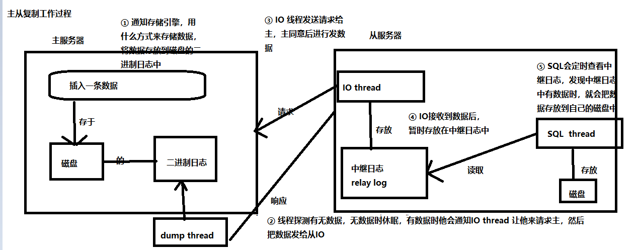 (2)Slave 将 Master 的复制到其中继日志(Relay log)。首先slave 开始一个工作线程(I/O),I/O线程在 Master 上打开一个普通的连接,然后开始 Binlog dump process。Binlog dump process 从Master 的二进制日志中读取事件,如果已经跟上 Master,它会睡眠并等待 Master 产生新的事件,I/O线程将这些事件写入中继日志。