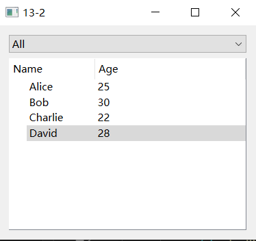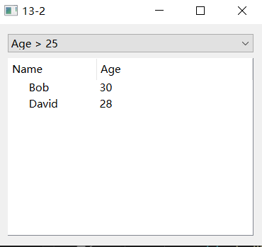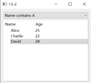 filterCombo.addItems({"All", "Name contains A", "Age > 25"});