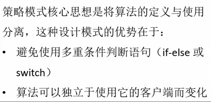 使用多态,运行时切换对象内的算法。可将算法的实现和使用算法的代码隔离开。可以组合来代替继承。开闭原则。无需对上下文进行修改就能引入新的策略