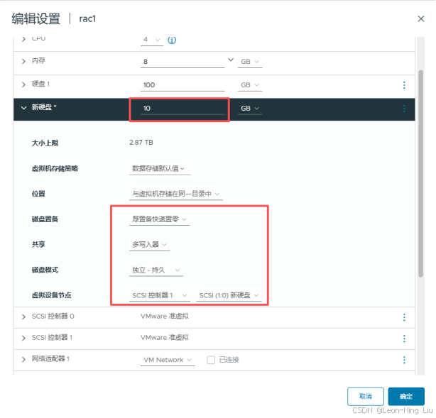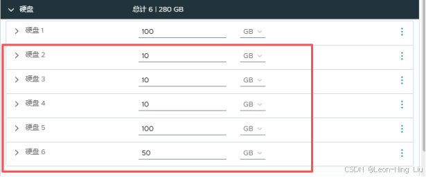 创建 10G3 100G 1 50G *1 ,共5个硬盘。