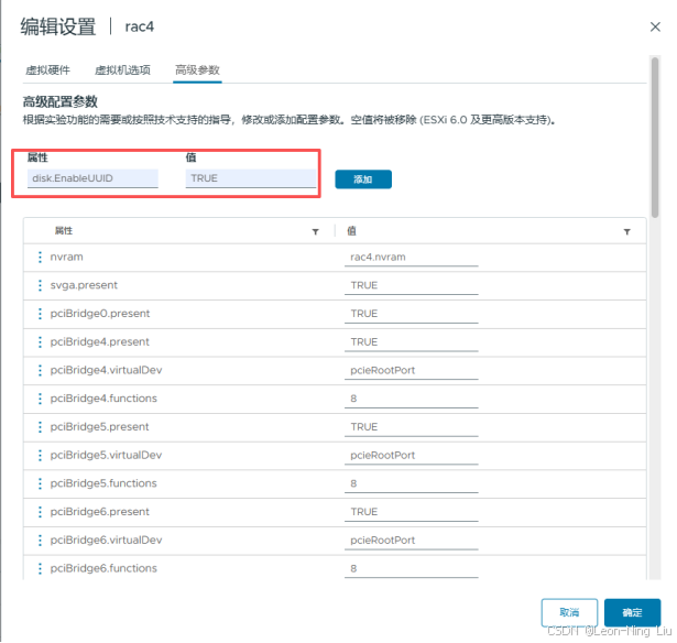 4台虚拟机添加参数disk.EnableUUID = "TRUE"