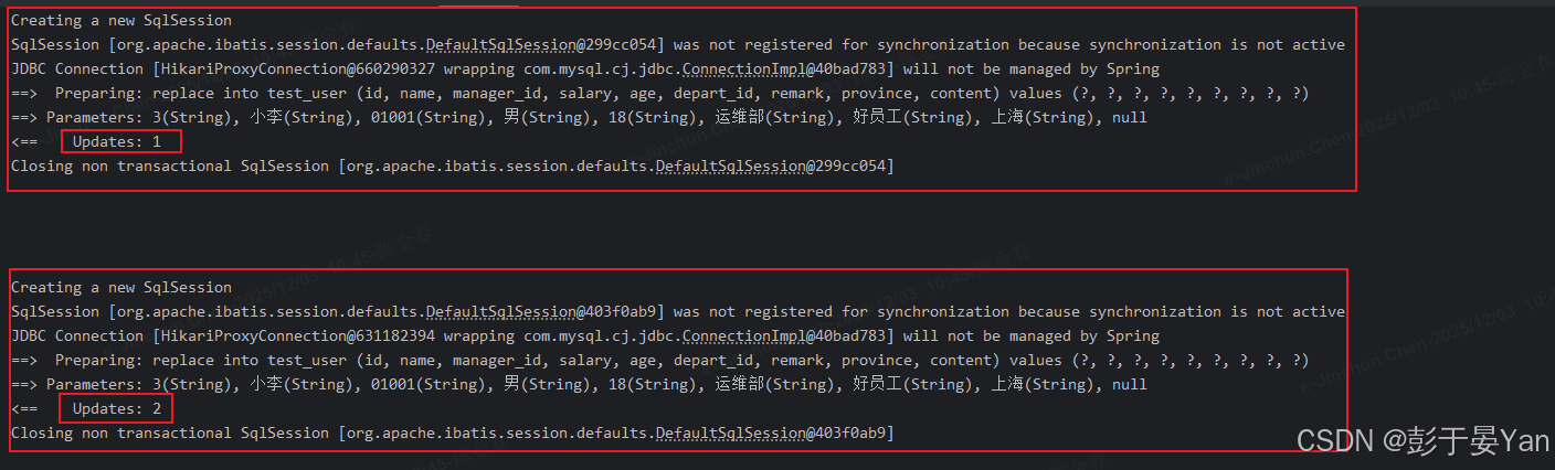 第二次:id = 3 的记录已经存在,它将被删除并用新插入的记录替换。Updates: 2