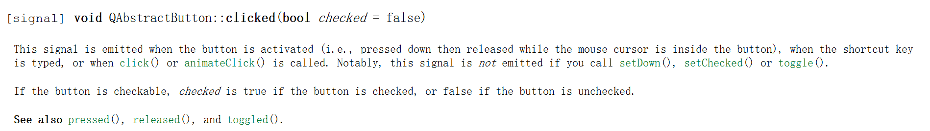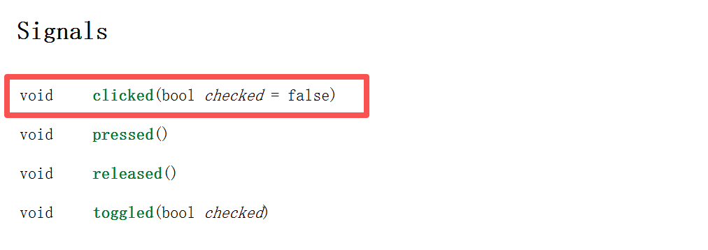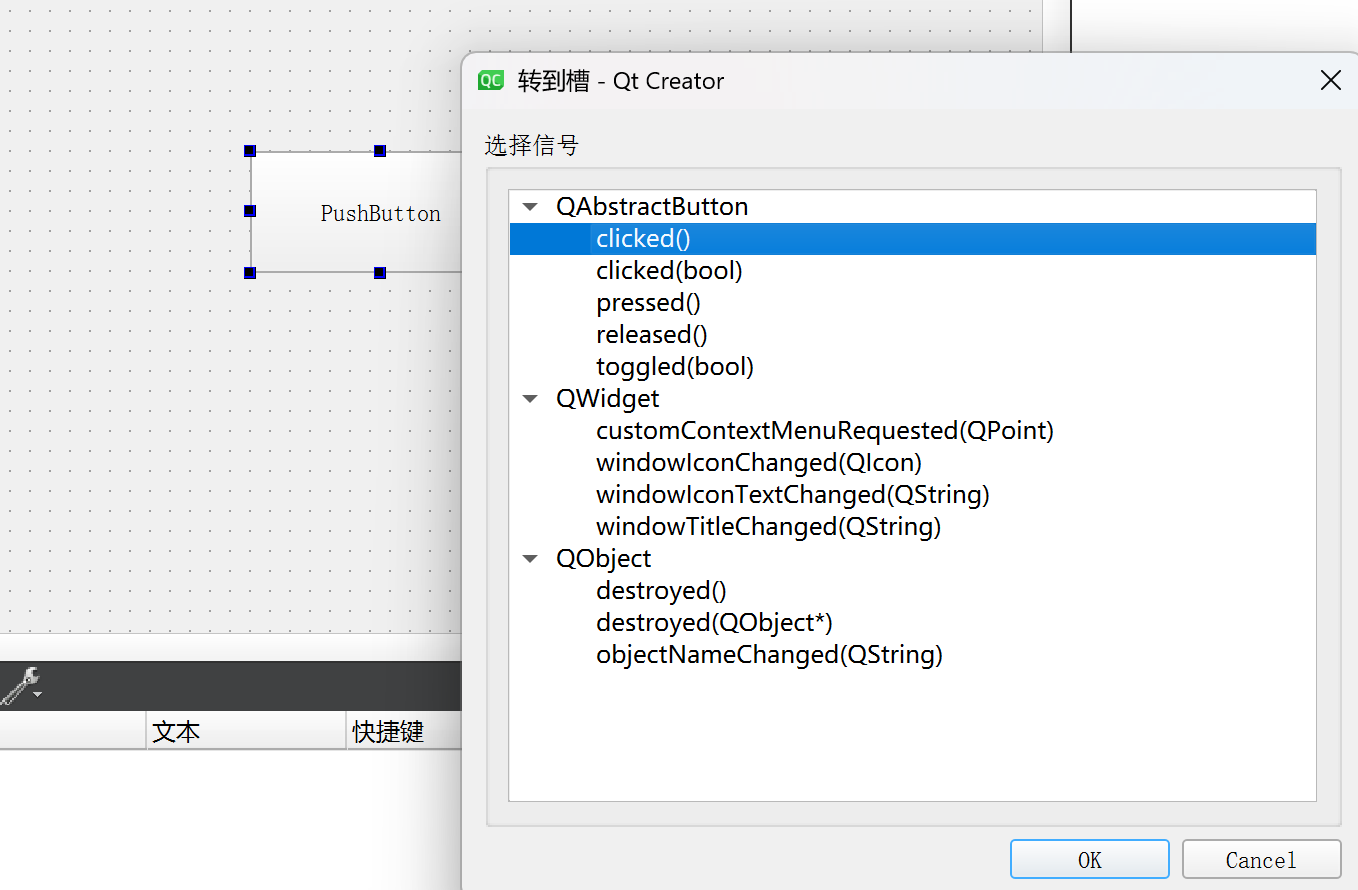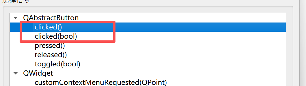 这个窗口就列出了QPushButton中给我们提供的所有信号