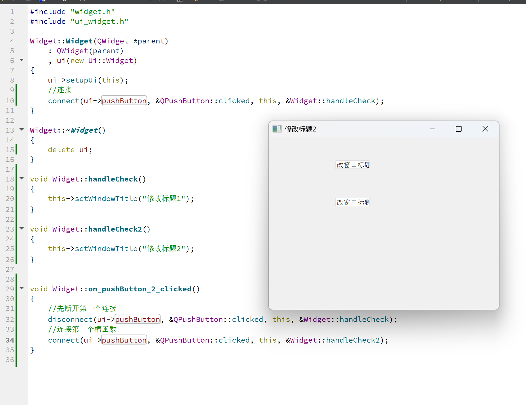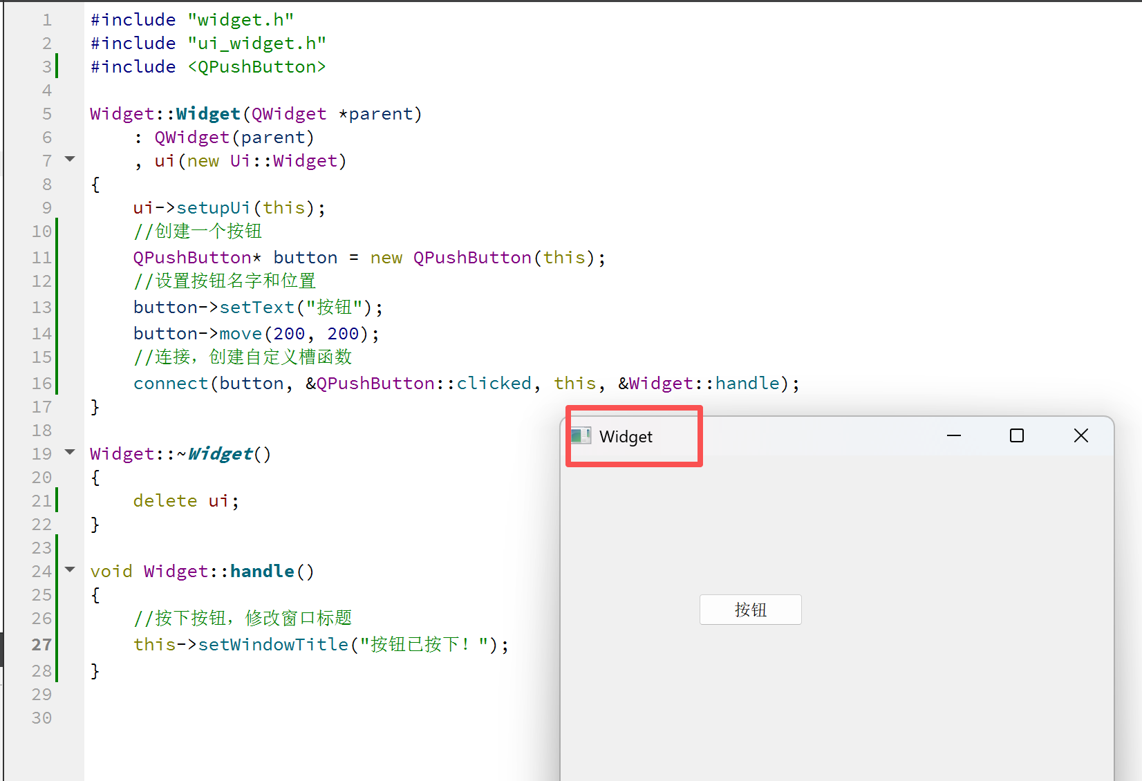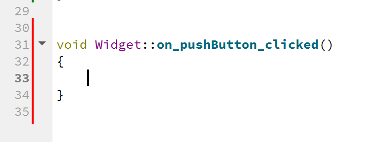 在这里编写我们需要的代码即可。在Qt中,除了通过connect来连接信号槽之外,还可以通过函数名字的方式来自动连接。