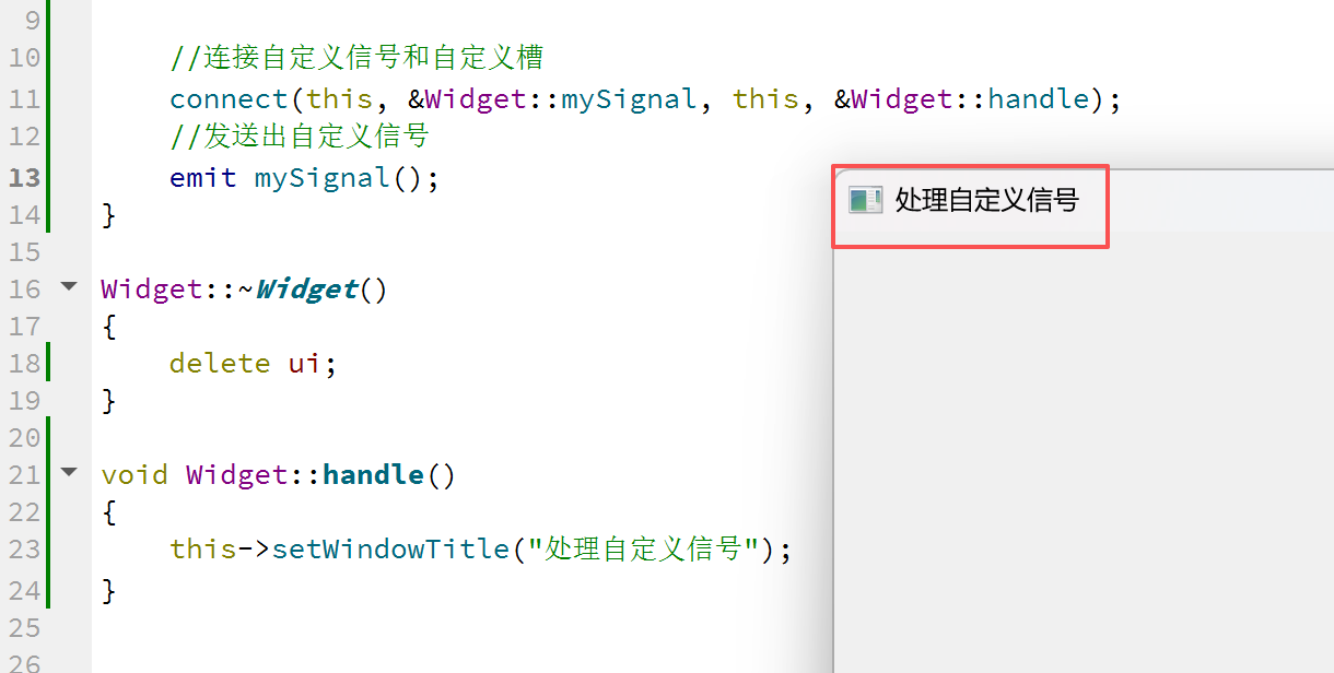 上述的操作过程中,是提前把不同的信号的处理方式都准备好了。一定是先把信号的处理方式准备好,再触发信号。在Qt中,一定要先关联信号和槽,然后再触发这个信号,顺序不能颠倒,否则信号就不知道如何处理了。