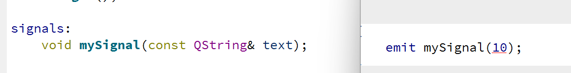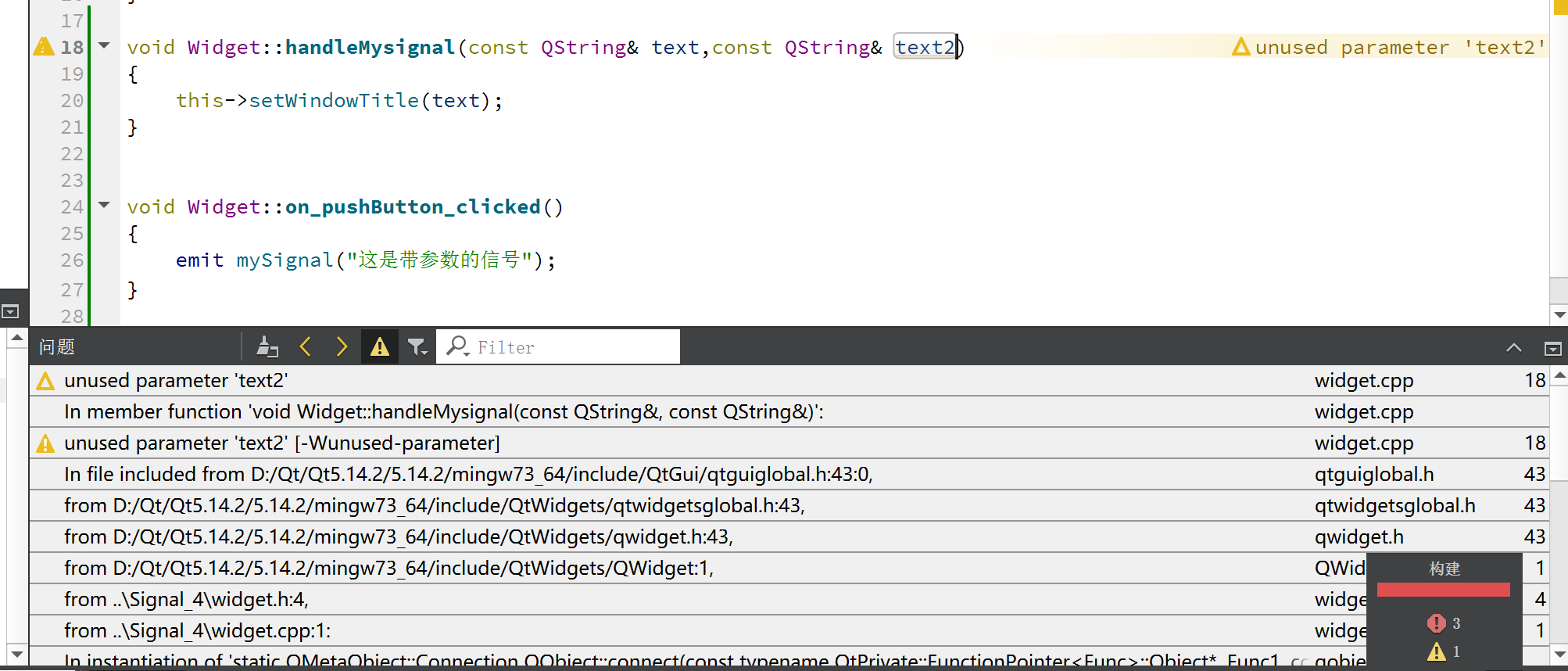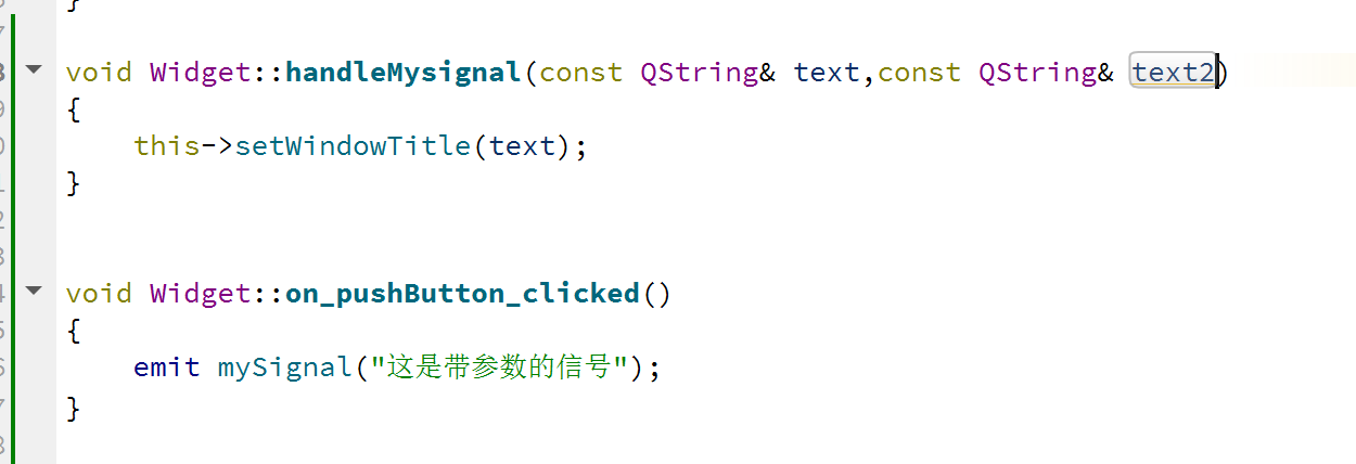 接下来我们增加信号的参数,槽函数的参数不变,看看会发生什么状况。