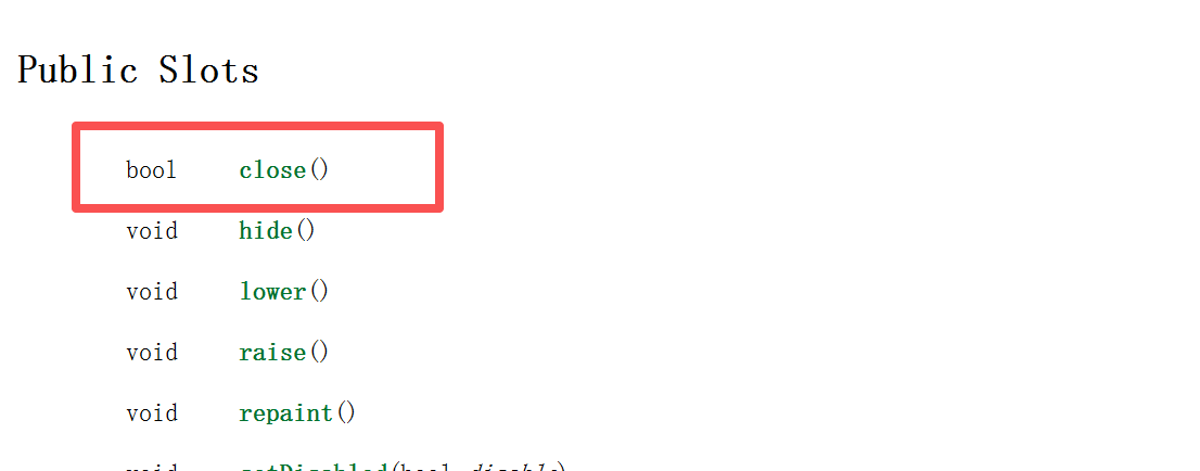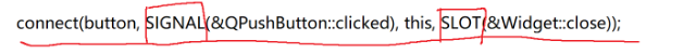 close是QWidget内置的槽函数,Widget也就继承了父亲的槽函数。