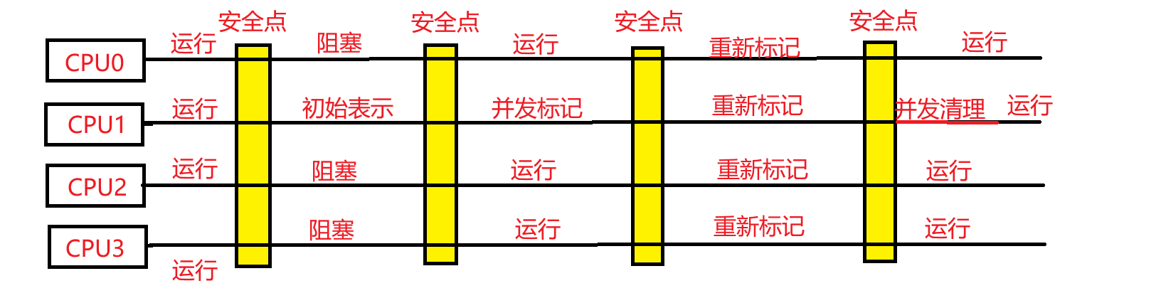 重新标记:最后一次短暂的STW,修正并发标记期间线程修改引用导致的偏差(如新增可达对象,新增失效对象),确保标记结果100%正确。