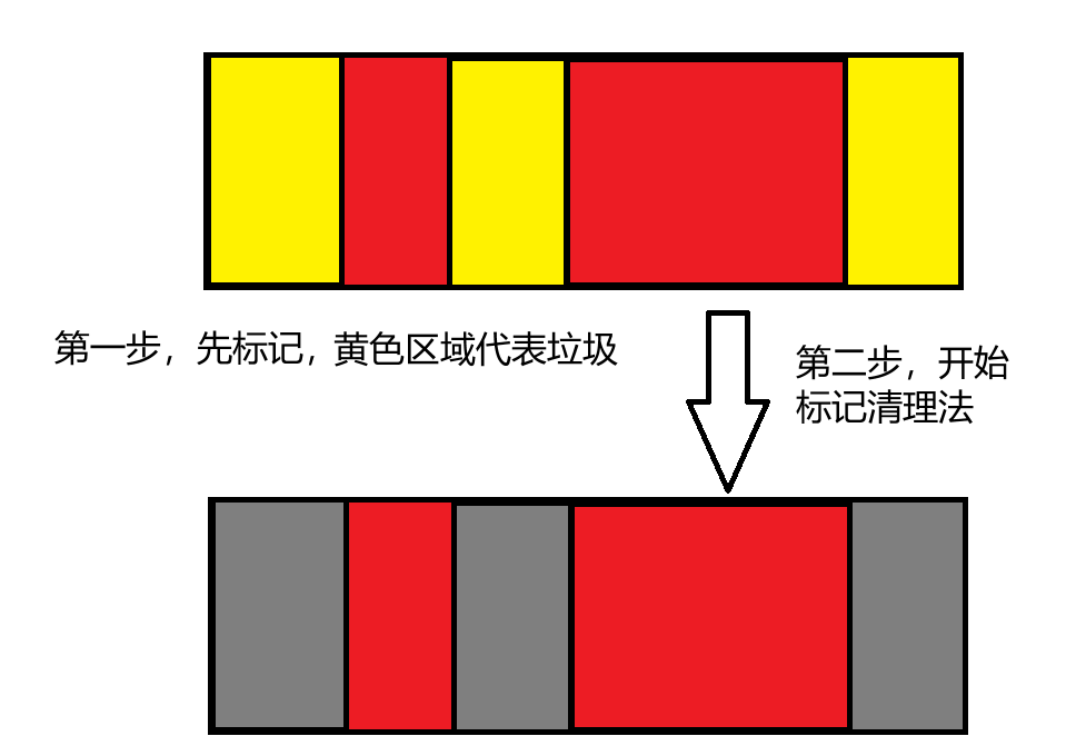 垃圾回收后,灰色区域就是可用区域,下面我们说一下这个算法的优缺点: