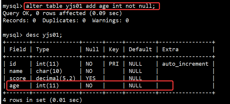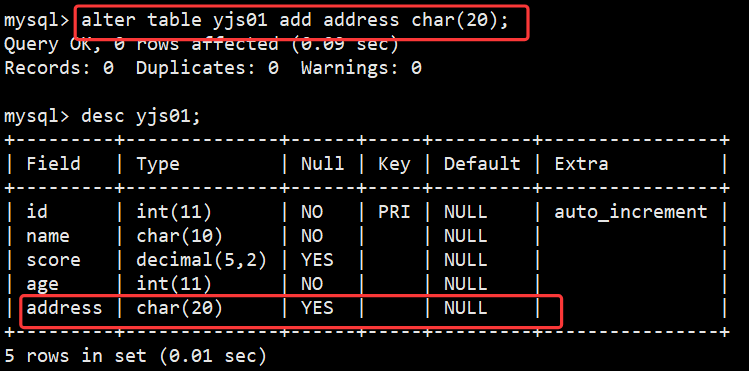 --增加字段