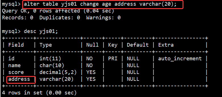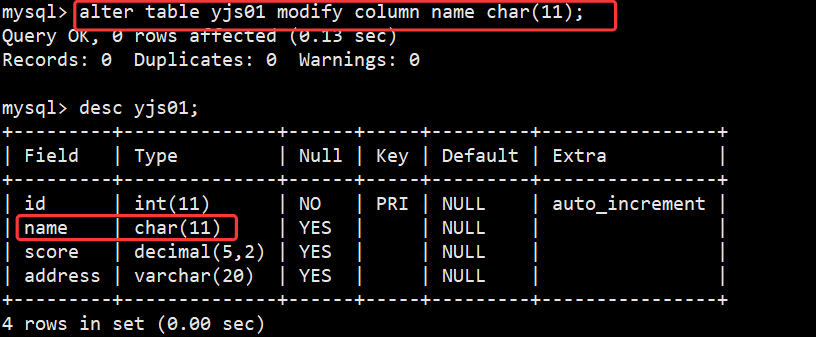 案例4:修改字段名称,并修改它的数据类型