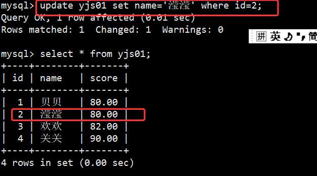 UPDATE 表名 SET 字段1=值1[,字段2=值2] WHERE 条件;
