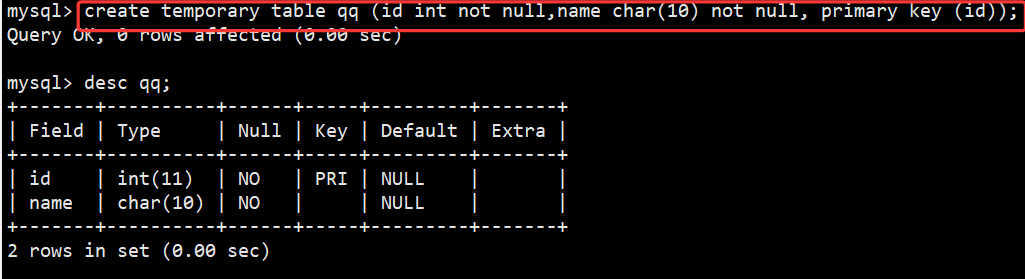 CREATE TEMPORARY TABLE 表名 (...);