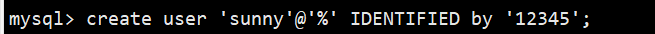 CREATE USER '用户名'@'来源地址' IDENTIFIED BY '密码';