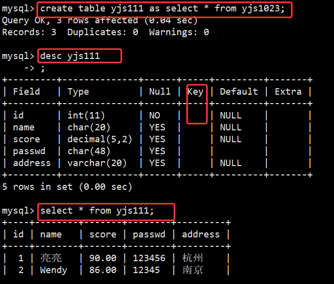 - CREATE TABLE 新表 LIKE 旧表;