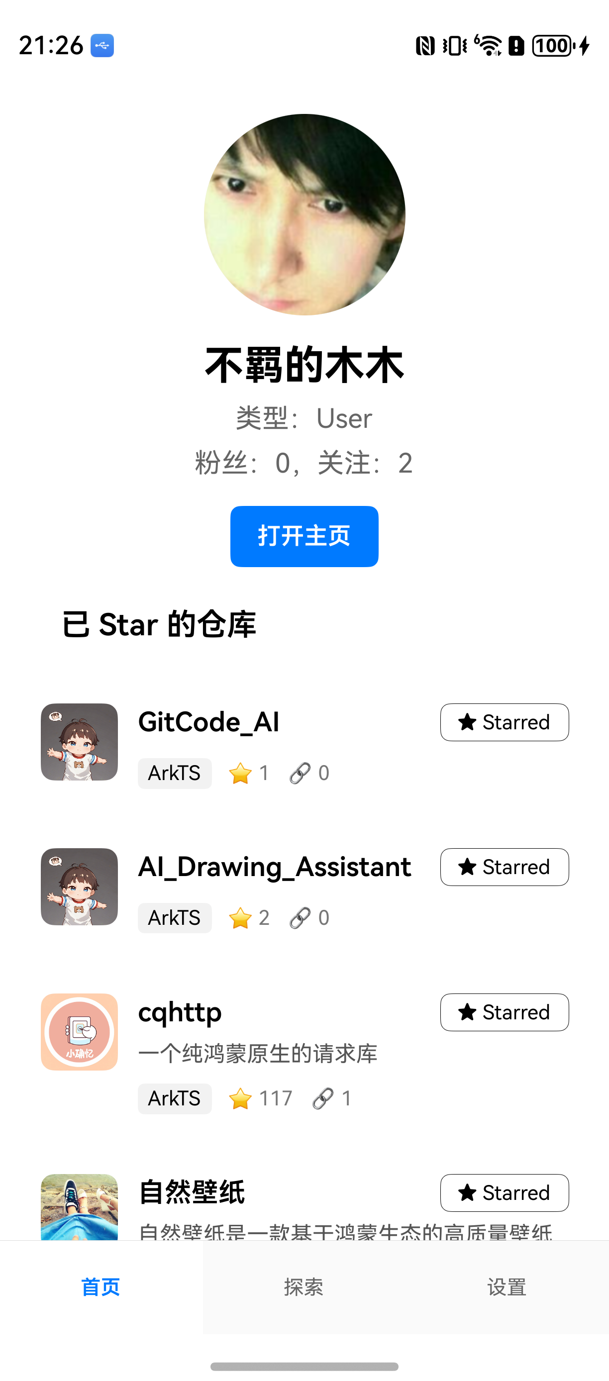 src/screens/Home.tsx:用户信息 + Star 列表 -