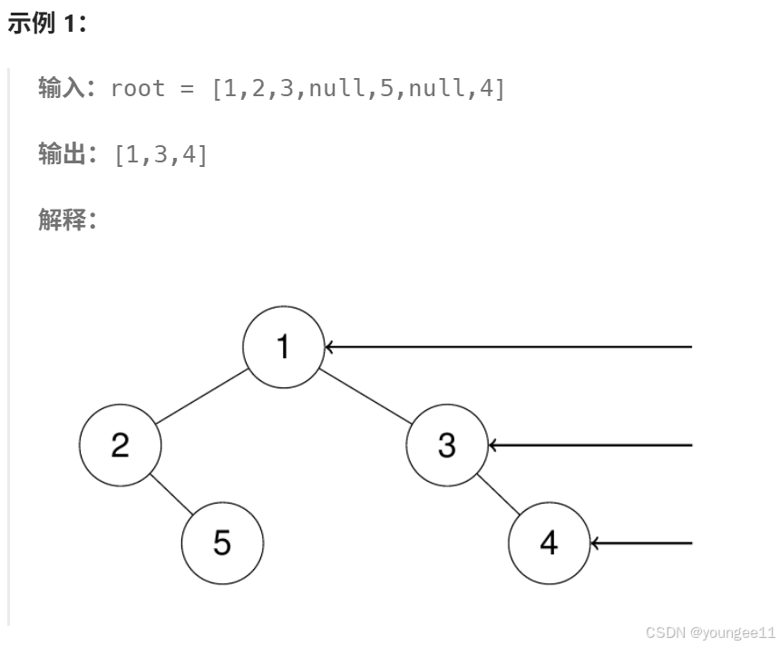 给定二叉树的根节点root,返回从右侧能看到的值。