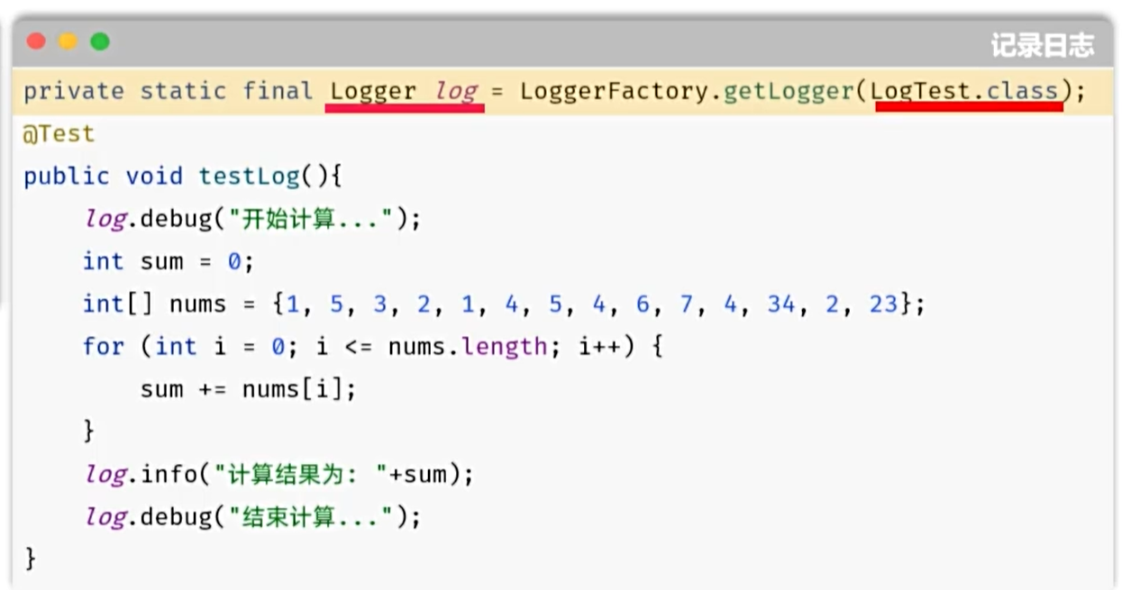 声明这么个常量,日志记录器叫Logger,起个名字叫log
