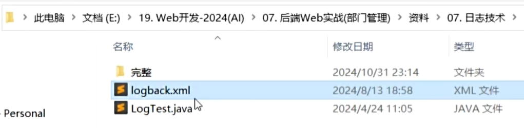 找到课程资料,找到日志技术,找到Logback.xml,Ctrl C复制一下,