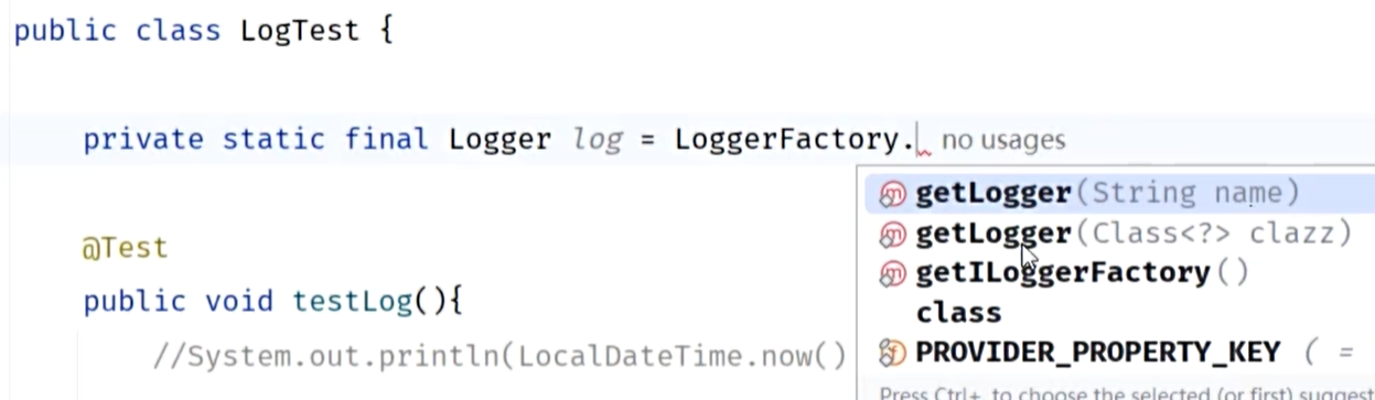 LoggerFactory也有很多,我们依然采用slf4j当中提供的这个
